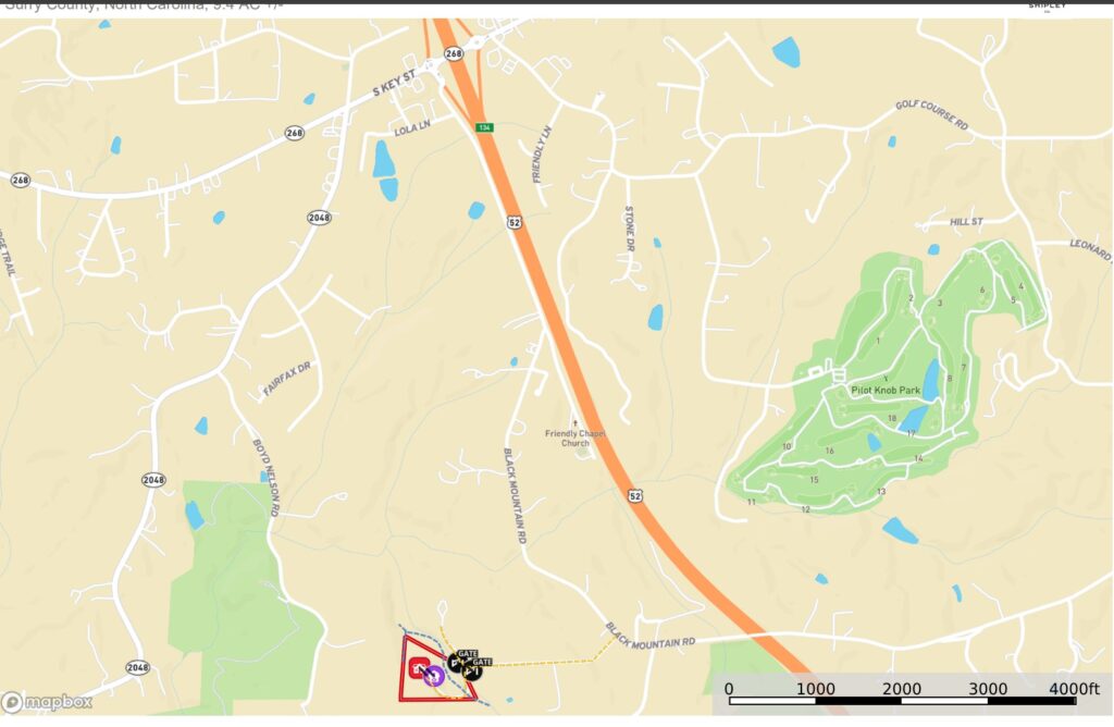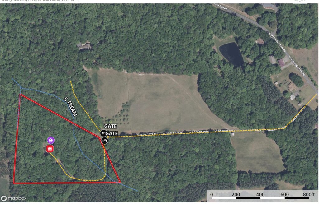 From Key Street/NC HWY 268 take Black Mountain Road 1.8 miles and turn right on Olde Pilot Trail. Continue 0.4 miles on Olde Pilot Trail, gated entrance on left. Use interactive map (link above) from your smartphone in order to navigate the lot with the Land ID App. You must download the LandID (free) app on your smartphone in order to see yourself on the map