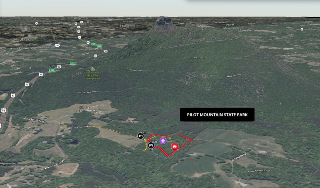 Discover 9.4± secluded acres at the end of a 2,850± foot long paved driveway, just 3 miles from downtown Pilot Mountain, NC and minutes from Pilot Mountain State Park’s Pilot Creek Access. This unique property features a 1987-built home with approximately 2,782 heated square feet, offering 3 bedrooms, 2 full baths, and 2 half baths, plus an indoor pool (currently non-operational).