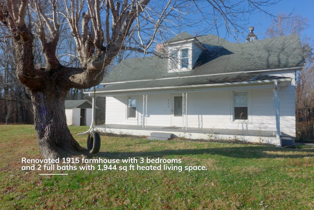 The property offers excellent accessibility with about 1,160± feet of paved public road frontage with power and fiber internet. The classic renovated 1915 farmhouse with 1,944 square feet of heated living space includes 3 bedrooms and 2 baths, a private well and septic system, and is complemented by six accessory farm buildings for storage, equipment, or livestock use.