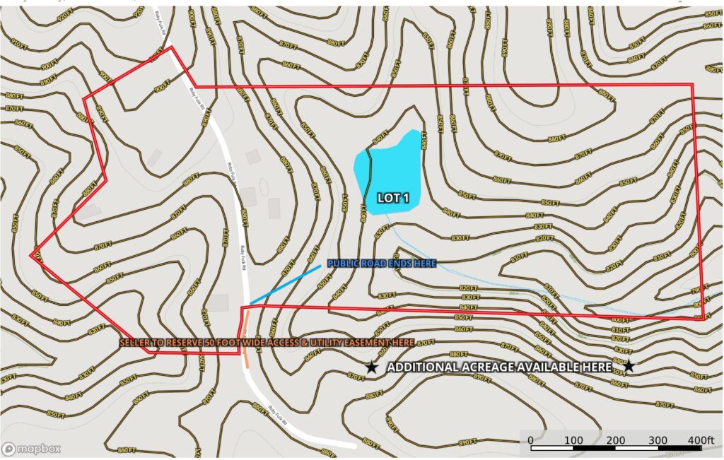 From US Highway 52 at Pinnacle Exit 29, take Perch Road south 3.6 miles, turn left on Roby Fulk Road and destination will be at dead-end in 1.0 mile. Use interactive map (link above) from your smartphone in order to navigate the lot with the Land ID App. You must download the LandID (free) app on your smartphone in order to see yourself on the map