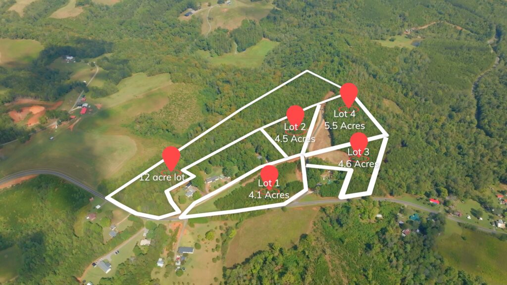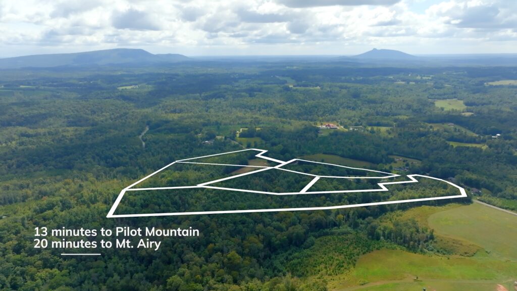 From NC 89 Highway, head south on Dearmin Road 1.1 miles and turn left at neighbor 1567 Dearmin Road Westfield, NC 27053. Use the interactive map (link above) from your smartphone in order to navigate the lots. You must download the free Land ID app in order to see where you stand on the map.