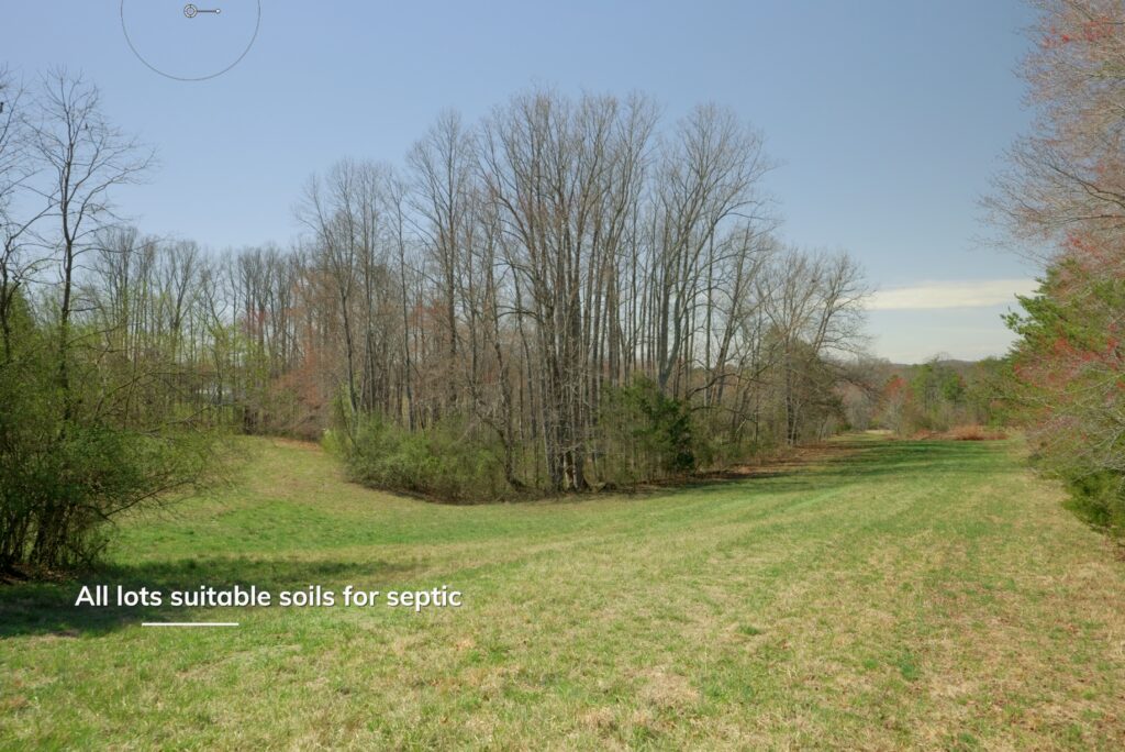 Located on a low-traffic road with privacy and open space. Each lot has paved public road frontage (except Lots 6, 7 & 8). Power and fiber internet available along Old Mill and Flat Rock Roads. Recent soils evaluation confirms septic suitability for 4+ bedroom homes on each lot (see soils report).