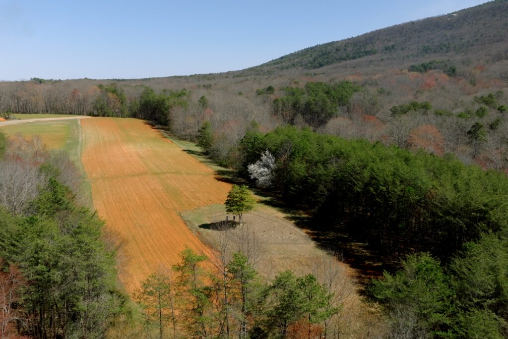 - Open crop fields + mid- & mature hardwood/pine forests
