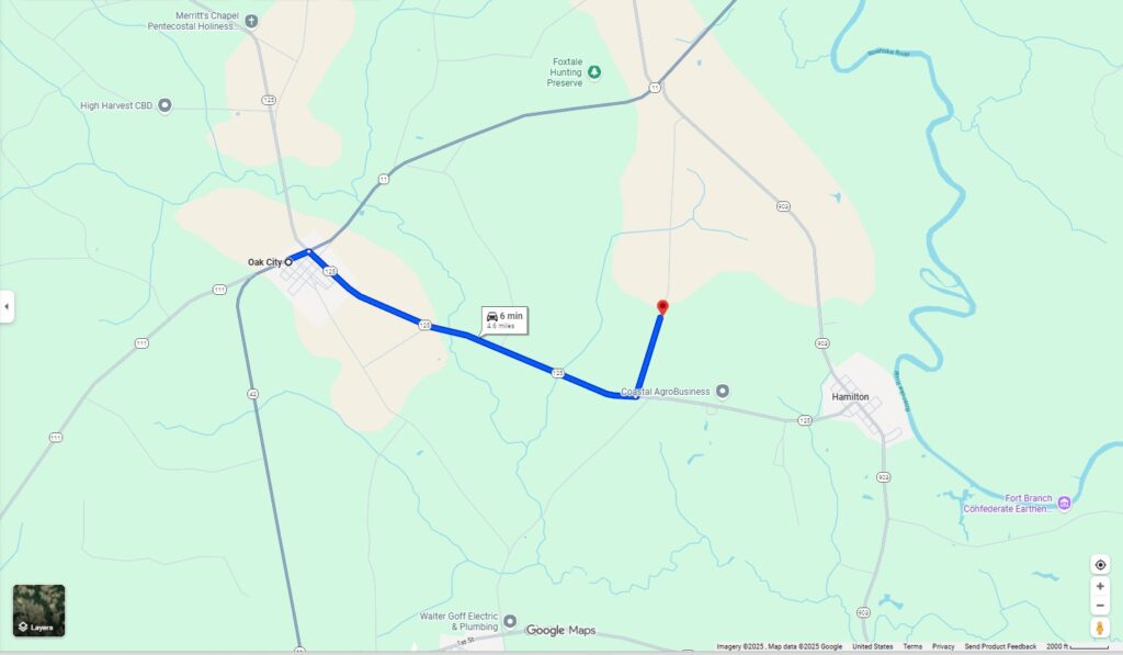 From Oak City, NC head southeast on NC-125 S toward E 2nd St 3.6 miles. Turn left onto Roy Beach Rd Destination will be on the right in 0.9 miles. Please be sure to use interactive map (click map above) from your smart phone to navigate property with the free Land ID app. You must download the free Land ID to see where you stand on the interactive map.
