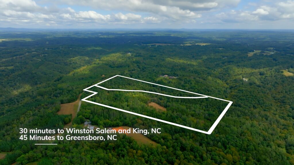 Two unrestricted tracts available 37.4 and 20.8 acres located one mile from the Dan River, and five minutes from downtown Danbury and Hanging Rock State Park. Both tracts have internal roads, mature hardwoods with some natural pine, several small fields, and multiple building site options. Each has its own spring/creek, and both share an additional creek. Paved public road frontage. No deed restrictions. County property tax rate is 0.71%. Leaf-off long-range views of the Sauratown Mountains; year-round views possible with tree clearing. 30 minutes to Winston Salem and King, and 45 minutes to Greensboro, North Carolina. Agent owned