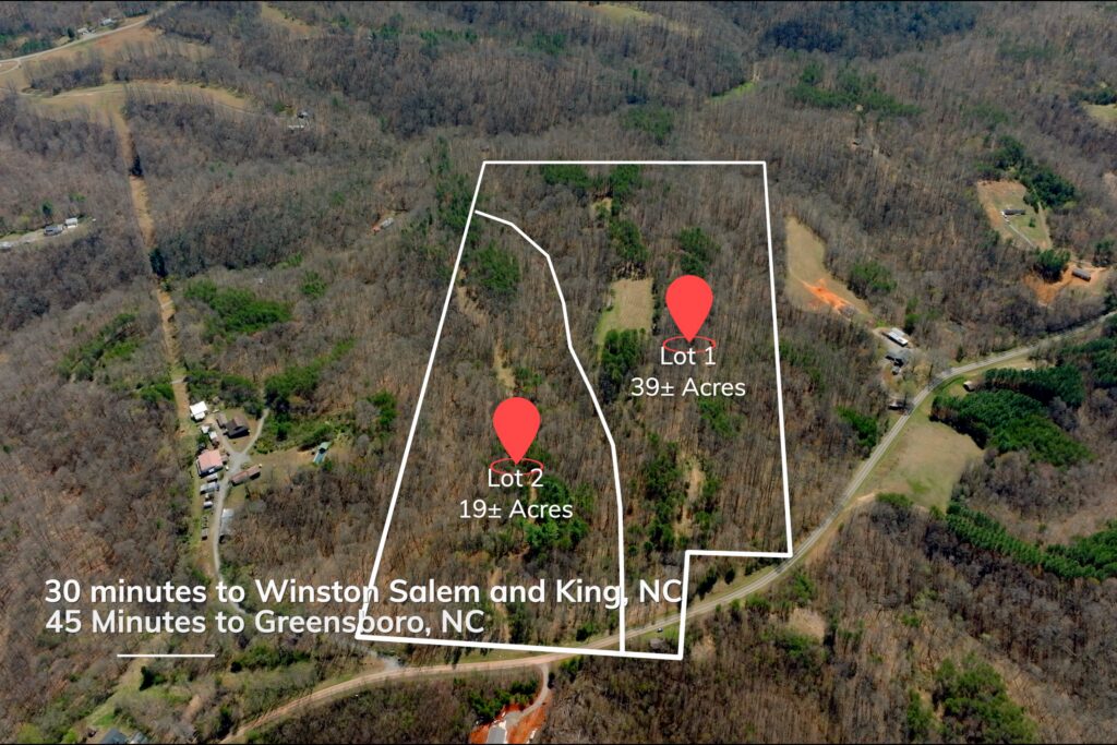 Two unrestricted tracts available 37 and 20.8 acres located one mile from the Dan River, and five minutes from downtown Danbury and Hanging Rock State Park. Both tracts have internal roads, soils suitable for septic, mature hardwoods with some natural pine, several small fields, and multiple building site options. Each has its own spring/creek, and both share an additional creek. Paved public road frontage. No deed restrictions. County property tax rate is 0.71%. Leaf-off long-range views of the Sauratown Mountains; year-round views possible with tree clearing. 30 minutes to Winston Salem and King, and 45 minutes to Greensboro, North Carolina. Agent owned